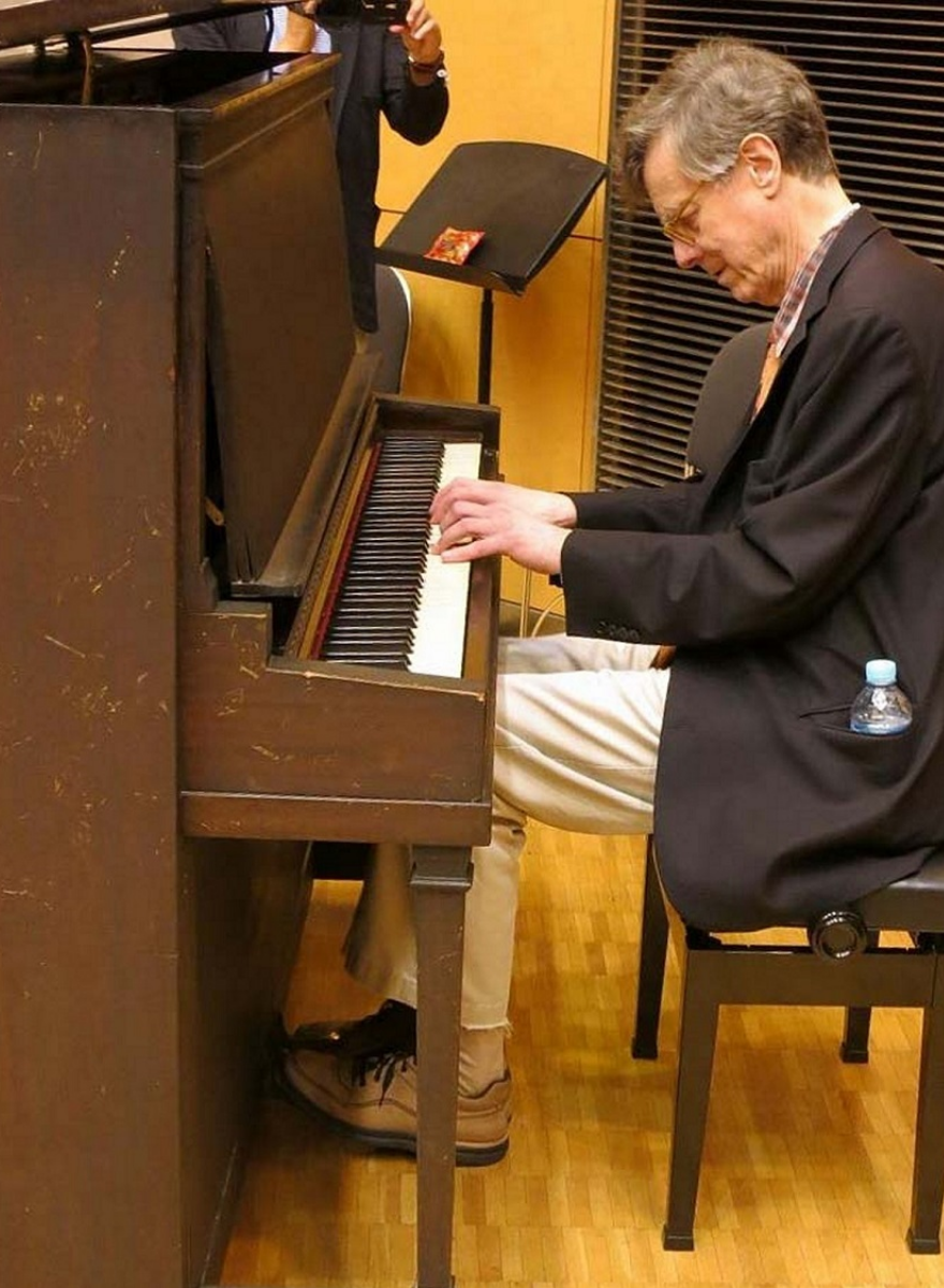 The late Peter Serkin, an American pianist, playing “Akiko’s Piano”. The piano was exposed to the atomic bombing at the Kawamoto family home in Mitaki-cho, Nishi Ward, Hiroshima (about 2.5 km from the hypocenter). On one side of the piano it still bears scars from shards of glass and other objects that were blown into it by the blast. The HOPE Project, an NPO, is restoring and managing it to this day.